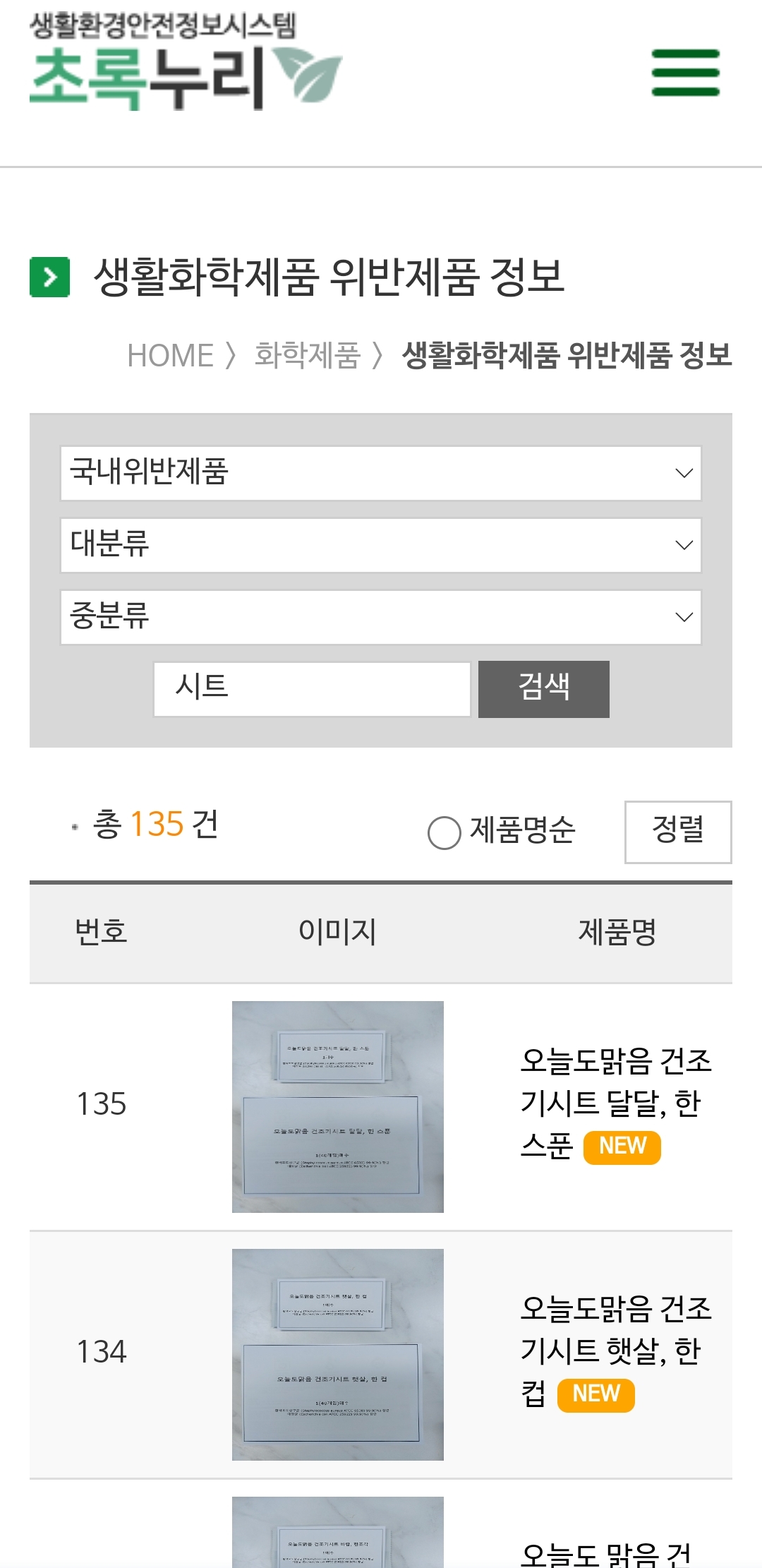 (정정 기사 난 제품들은 확인되는대로